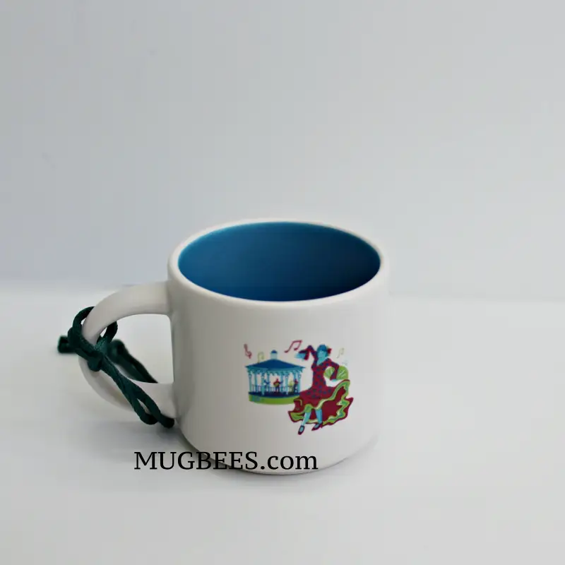 Art on mug features the world-renowned Albuquerque Balloon Fiesta and a dancing lady depicting the late New Mexico flamenco artist Maria Benitez.
