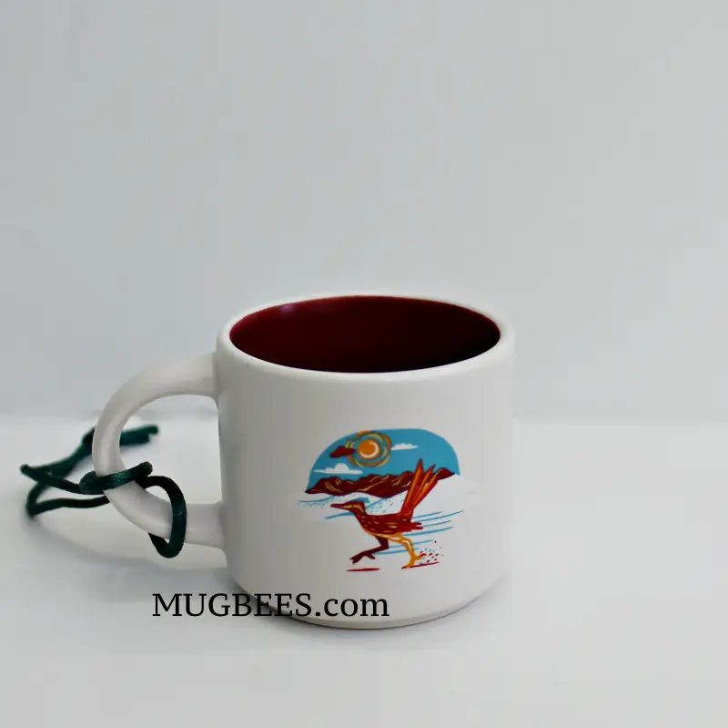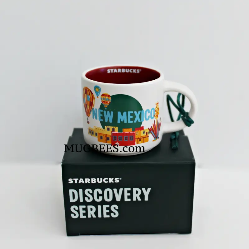 Art on mug features the world-renowned Albuquerque Balloon Fiesta and the adobe architecture of Taos Pueblo.