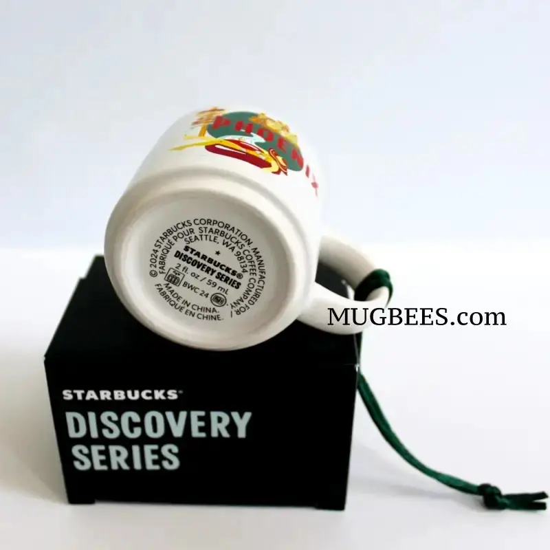 Art on demi mug feature the red hot Sun over phoenix, lake lifestyle, golf course, and the desert wildlife of the Sonoran desert including coyote, rattlesnake, and cactus.